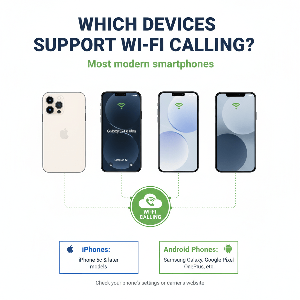 • iPhones: iPhone 5c and later models typically support Wi-Fi calling.