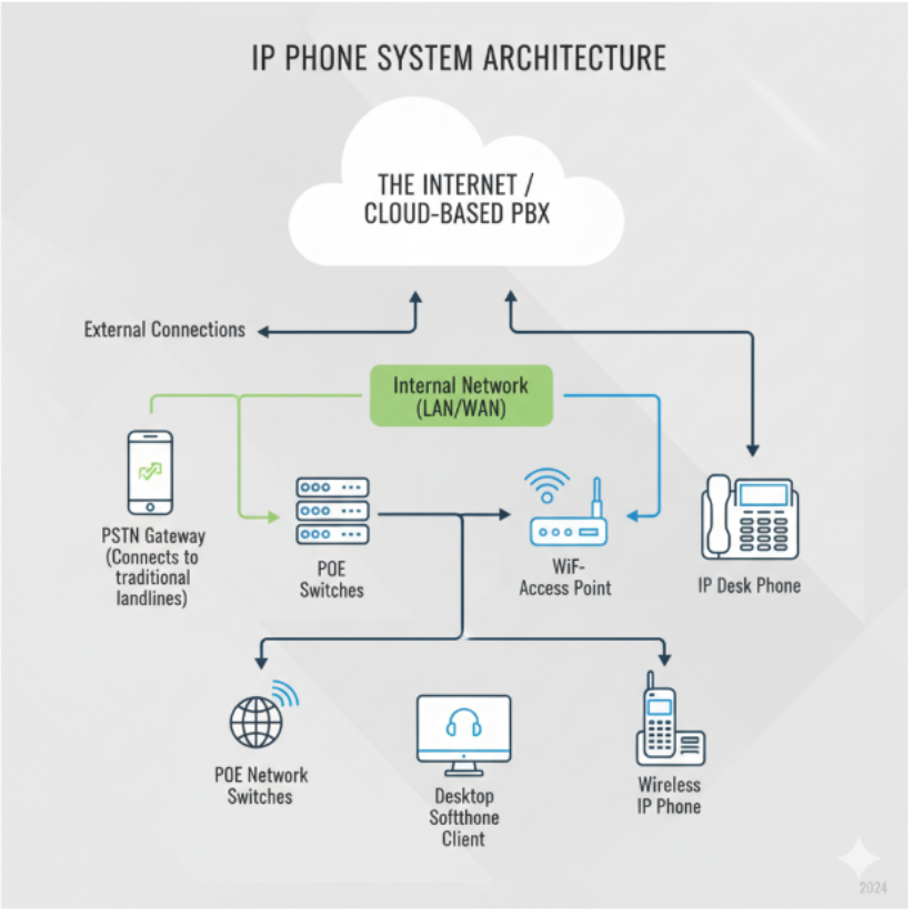 • Hosted IP Telephony (Cloud): The provider manages the ip phone server in their data center. This is ideal for ip phone systems for small business because it requires no on-site maintenance.