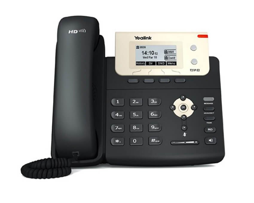 The Yealink T21P E2 IP Phone is a 2-line entry level VoIP phone that offers a smooth user experience. The T21P E2 features a phone directory, HD-Voice, a 5-line graphical LCD screen and supports PoE.